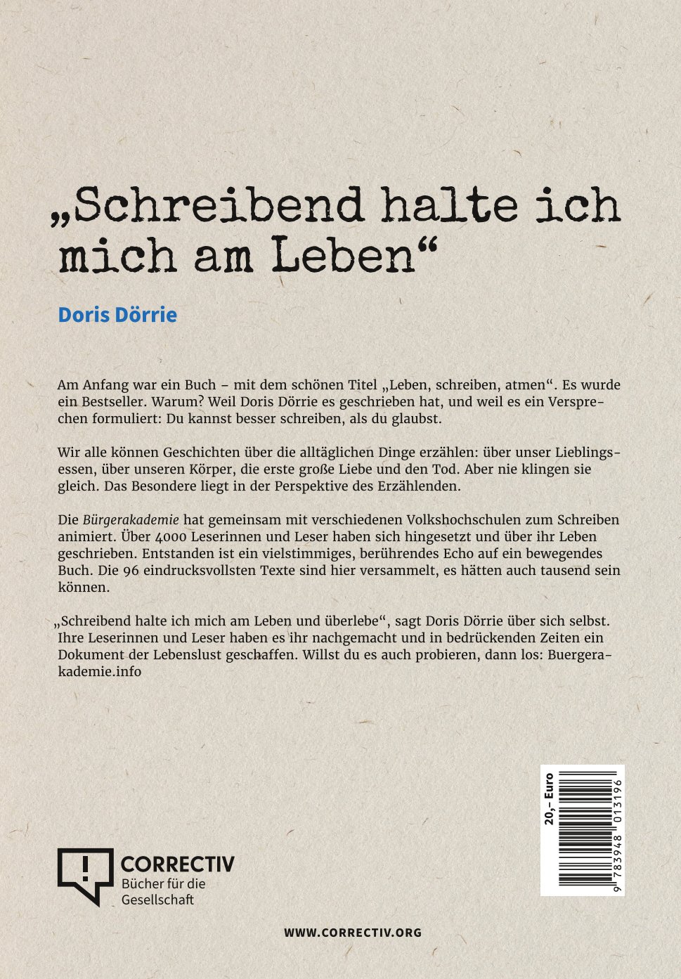 Zwischen den Zeilen wohne ich noch immer, Hrsg. Doris Dörrie & Cordt Schnibben, Correctiv-Verlag 2022